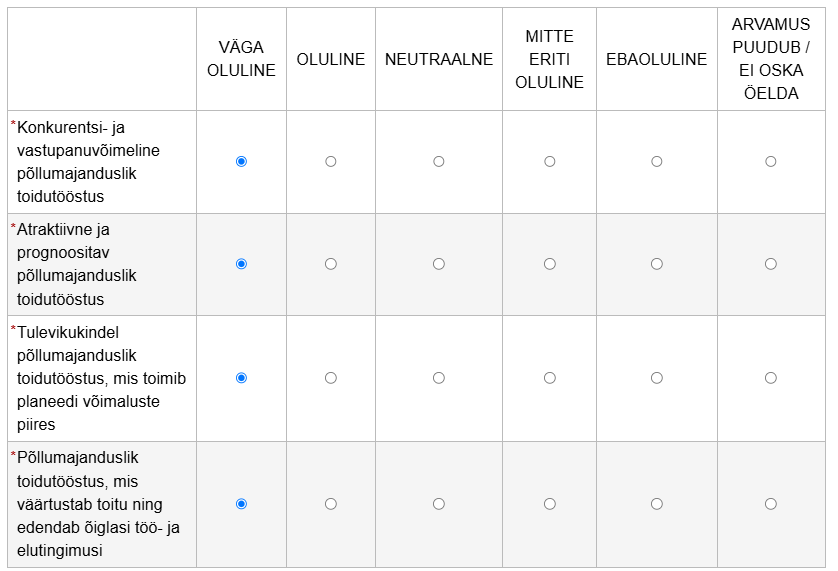 Siin on soovituslikud vastused, mille eesmärk on teha vastamine Sinu jaoks võimalikult lihtsaks ja kiireks. Ülioluline on aga, et Sa EI kirjutaks tekstikastidesse täpselt sama teksti, sest identsete vastustega ankeedid liidetakse kokku ja Su vastus läheks kaotsi.