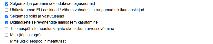 - Tõsta esile teemasid, mida teised küsimused ei kata